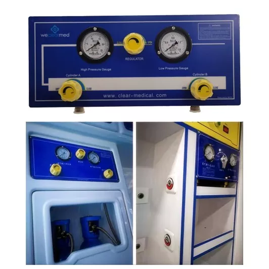 Unit manifold gas ambulans ini sesuai untuk ambulans dengan penggunaan oksigen yang tinggi. Ia memasukkan oksigen tekanan tinggi botol melalui hos logam ke saluran paip utama panel kawalan, dan oksigen tekanan tinggi dihantar ke terminal oksigen melalui saluran paip tekanan rendah selepas depressurisasi digunakan sebagai sumber oksigen untuk kegunaan bantuan pertama. Prinsip kerja adalah untuk mengurangkan oksigen tekanan tinggi ke dalam tekanan rendah dan menyerahkannya ke terminal oksigen melalui saluran paip masing -masing, untuk membekalkan pelabuhan terminal oksigen dan port ventilator. Panel kawalan boleh disambungkan kepada dua atau lebih silinder oksigen pada masa yang sama untuk menguraikan oksigen tekanan tinggi botol ke tekanan tertentu, yang merupakan jenis peralatan untuk bekalan gas terpusat. Panel kawalan terdiri daripada saluran paip tekanan tinggi yang diperbuat daripada hos logam, yang disambungkan ke silinder oksigen melalui benang G5/8. Setiap silinder oksigen disambungkan ke panel kawalan dengan injap penukaran tekanan tinggi yang sama, yang mengawal saluran paip tekanan tinggi masing-masing. Paip tekanan tinggi yang menghubungkan setiap silinder oksigen di hujung belakang injap pensuisan disambungkan ke satu sama lain, dan manifold dilengkapi dengan penyambung tee di tengah-tengah manifold untuk menghubungkan meter tekanan tinggi, pengawal selia dan saluran paip tekanan tinggi dalam siri. Meter tekanan tinggi digunakan untuk memantau tekanan oksigen dalam saluran paip tekanan tinggi panel kawalan, dan pengawal selia digunakan untuk mengawal oksigen tekanan tinggi ke tekanan yang diperlukan dan kemudian output ke terminal tekanan rendah. Akhir tekanan rendah disambungkan ke terminal oksigen, injap keselamatan dan tolok tekanan rendah, yang digunakan untuk memantau tekanan dalam saluran paip tekanan rendah panel kawalan, manakala injap keselamatan secara automatik membuang gas apabila tekanan output lebih tinggi daripada tekanan reka bentuk, untuk memastikan keselamatan dan kestabilan tekanan output. Sistem ini sesuai untuk mana -mana tempat di mana penukaran penumpuan gas diperlukan untuk memantau tekanan gas dan kuantiti sisa gas, seperti: hospital, ambulans, petroleum, stesen minyak petroleum cecair dan perusahaan dan institusi perindustrian dan perlombongan lain.